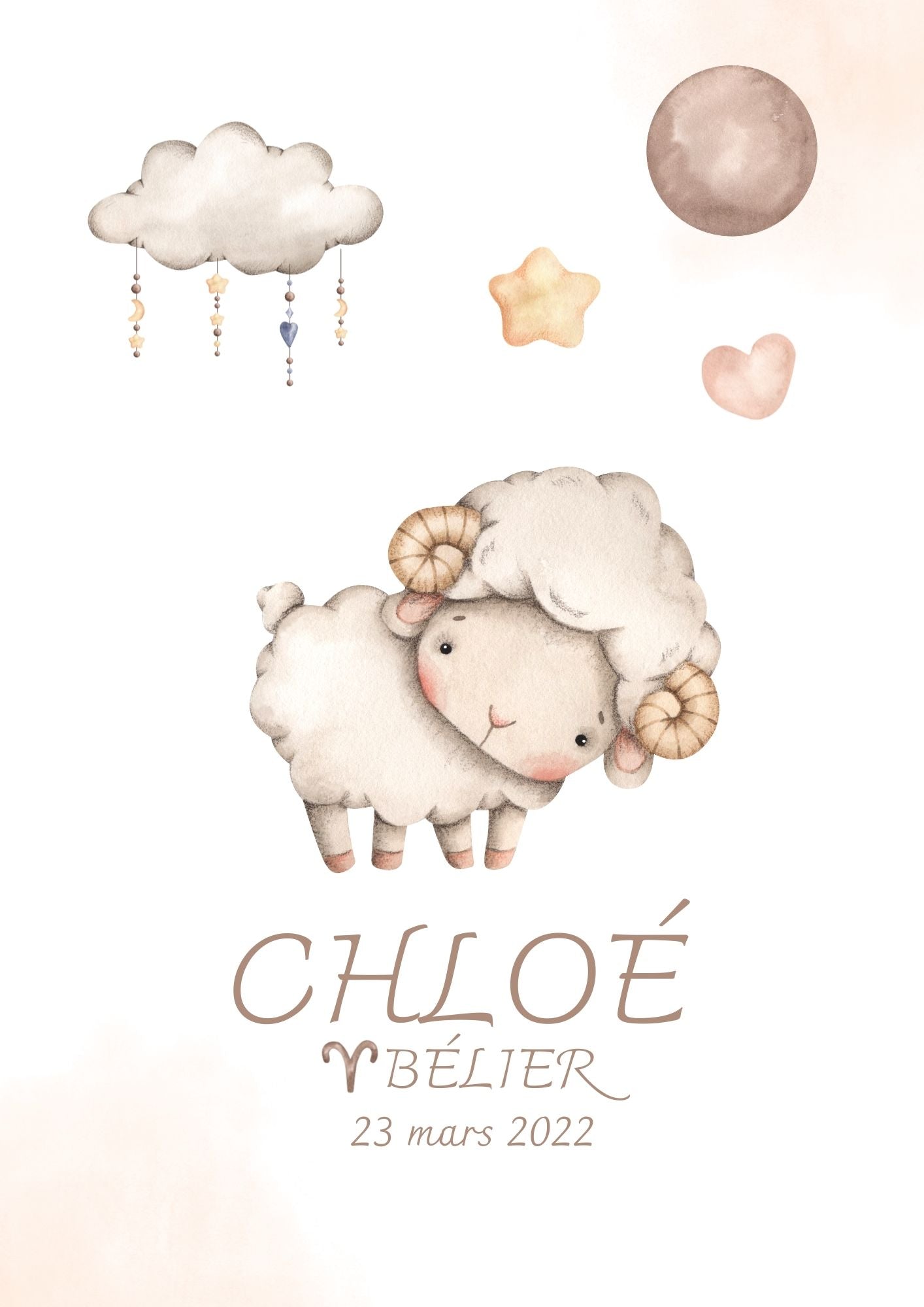 Chaque cadre met en avant le prénom de votre enfant, son signe astrologique et sa date de naissance, accompagné d’une illustration douce et moderne de son signe du zodiaque.